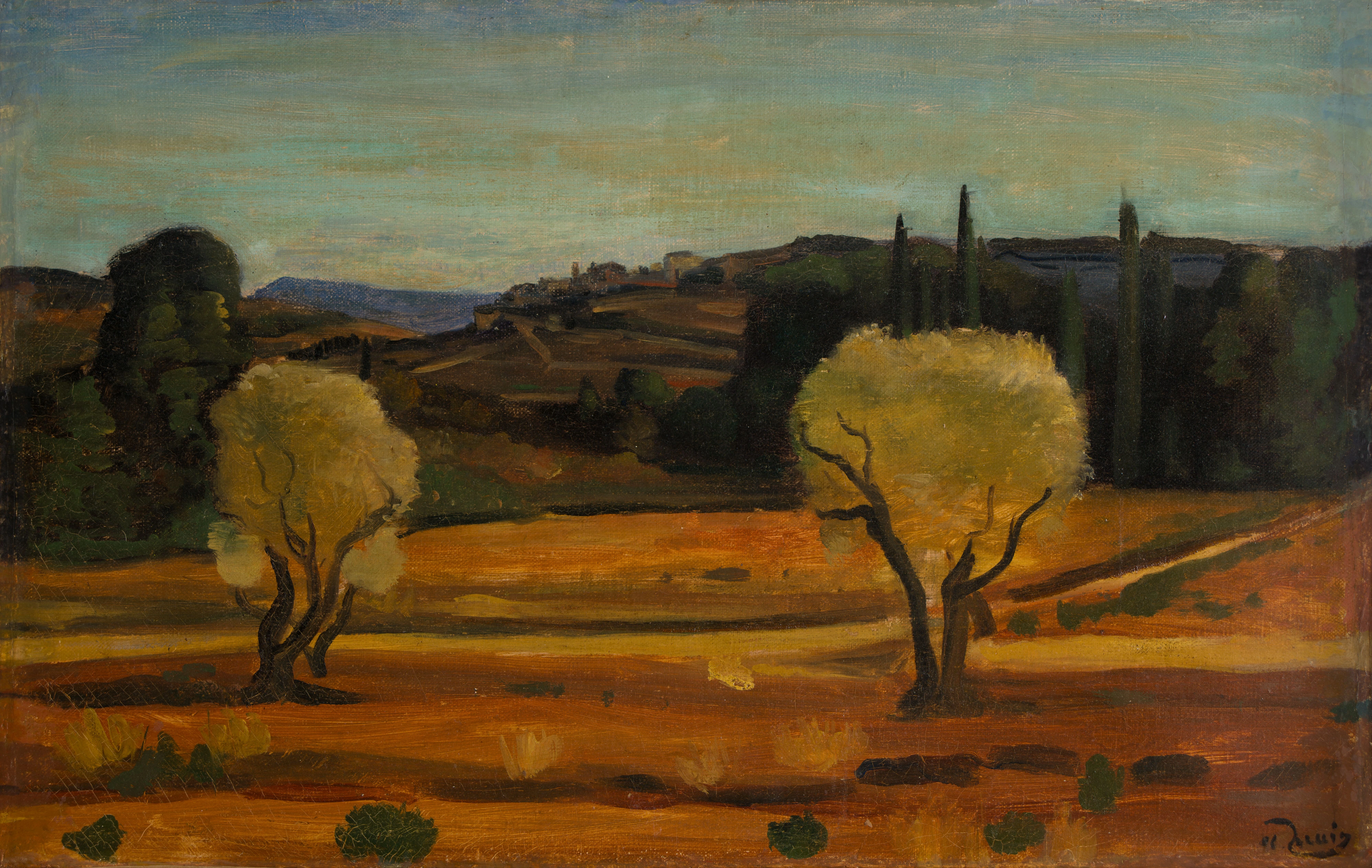 Comme beaucoup d’artistes de sa génération, Derain était féru de nouveautés technologiques – avions, voitures de sport – et attentif aux dernières découvertes scientifiques. La seule matière de la peinture, c’est la lumière. Faire de la lumière la matière de la peinture actuelle, voilà qui est en tout point conforme aux théories scientifiques les plus avancées. La lumière structure certains paysages sous la forme discrètement évoquée d’ampoules électriques/sous forme d’ampoules électriques discrètement évoquées.