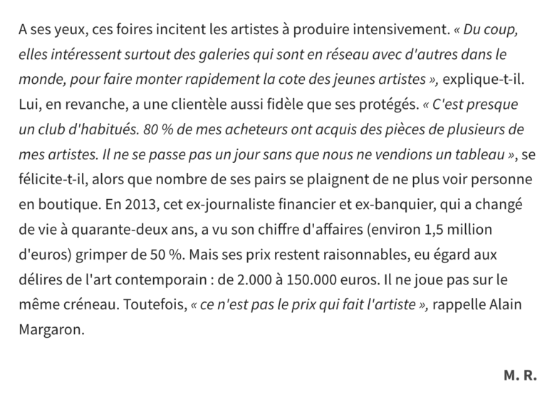 La galerie dans « Les Echos » – juillet 2014
