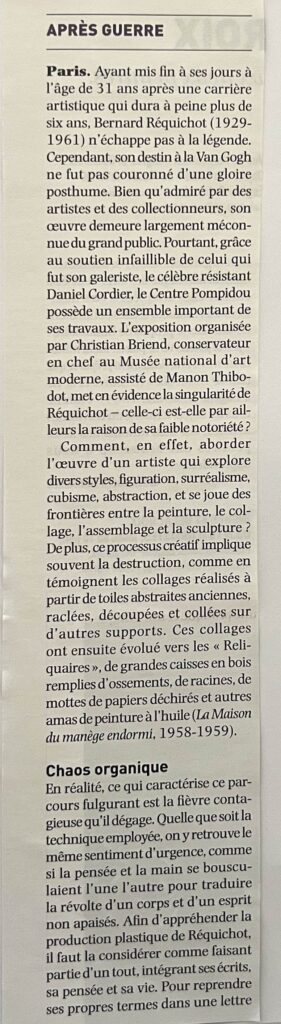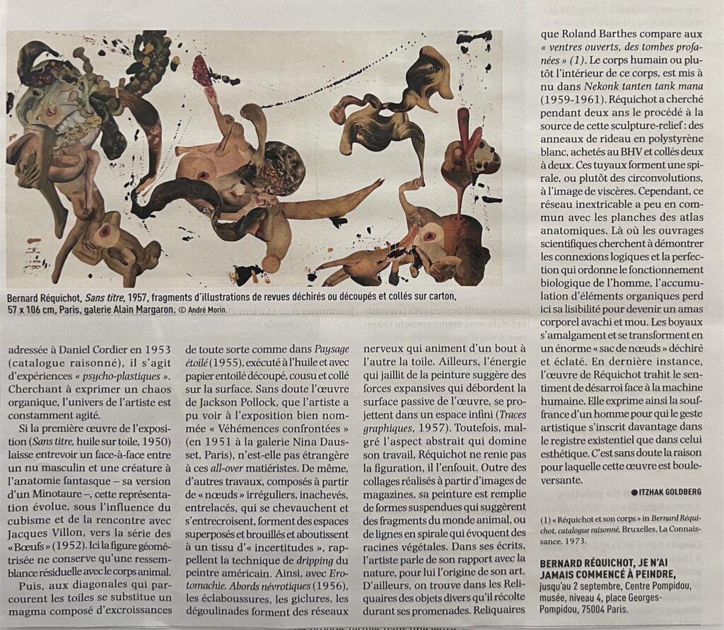 L’art tourmenté de Bernard Réquichot, dans Journal des Arts – 11 au 23 mai 2024