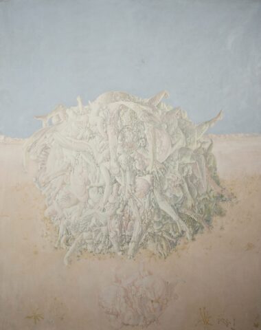 Si le diable se cache dans les détails, c’est dans tous ceux de cette œuvre emblématique du plus sombre du XXe siècle et malheureusement de ce que nous avons déjà vécu du XXIe. Nous ne pouvons pas ne pas penser à la série de Zoran Music : Nous ne sommes pas les derniers, dont l’un des dessins est actuellement exposé vis à vis de ce Dado à la galerie.
