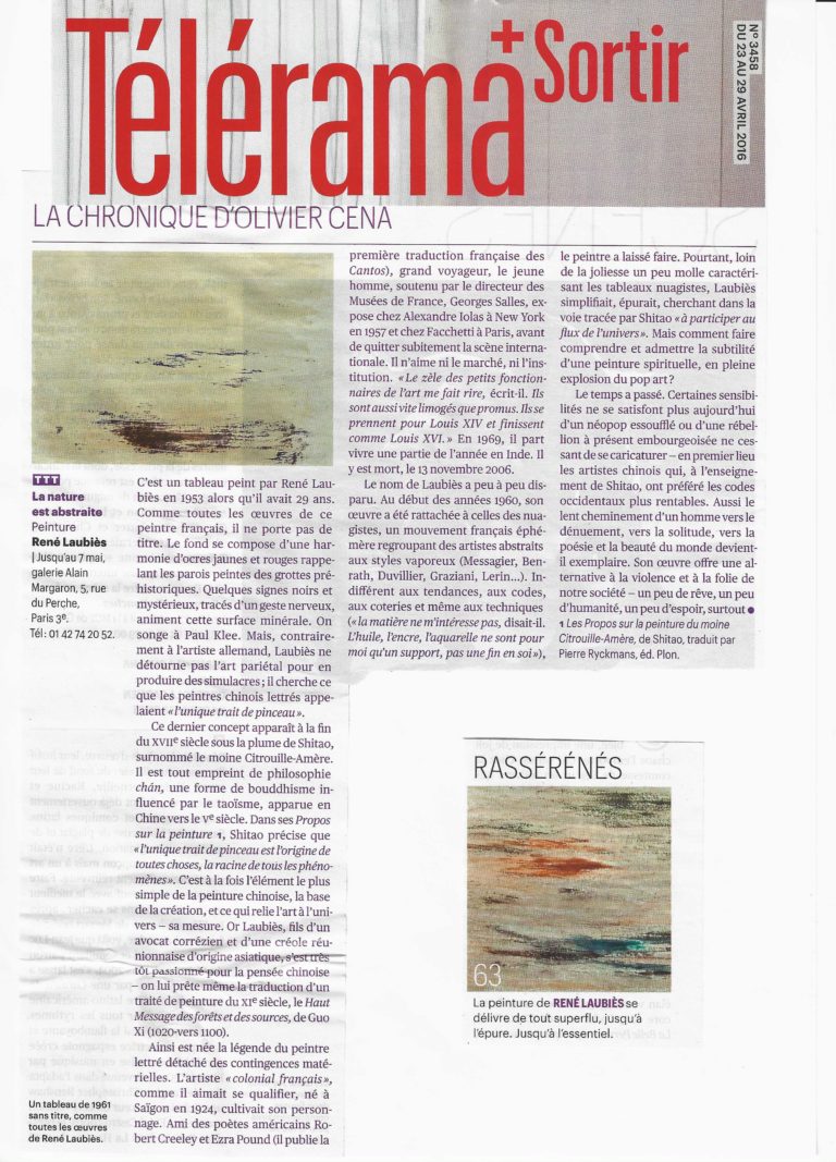 René Laubiès dans Télérama – avril 2016
